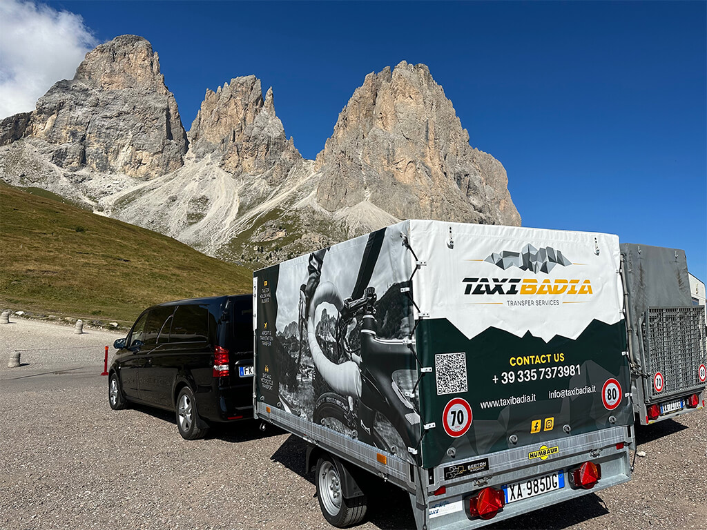 Abbiamo scelto la comodità e la sicurezza per accompagnarti nei tuoi viaggi di lavoro, per portarti alla scoperta dell'Alta Badia e delle Dolomiti, per trasportare la tua moto o la tua bici assieme a te, per accompagnarti comodamente sulle piste del Dolomiti Superski o semplicemente alla tua meta.